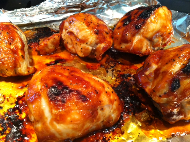 Anyways, I came across a recipe a while back that said you could do BBQ chicken in your oven with the broiler and I thought I’d try it out. The first time was a great success! Then I lost the recipe and couldn’t find it again. It must have been before I became a Pinterest addict. I had a few friends that moved this past weekend and I wanted to bring them some housewarming food, since all their kitchen stuff would be packed up. So, I improvised and made two huge trays of bbq chicken in my oven and it turned out really nice. I love making sure people are getting fed.
